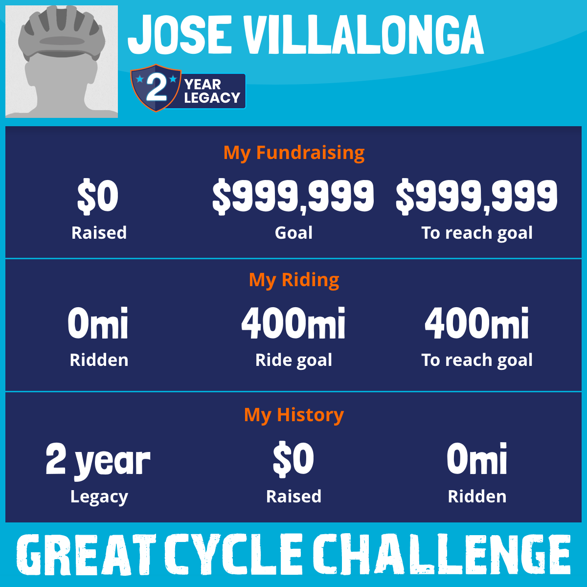 I am riding 400 mi in memory of my dad, Jose Villalonga. Please sponsor me and support my challenge to fight kids' cancer and save little lives.