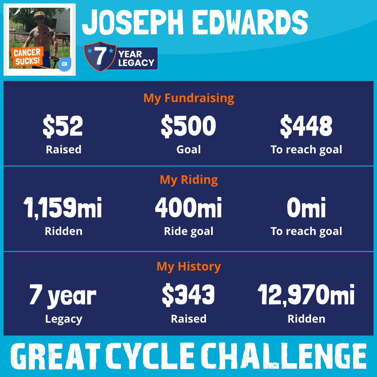 2,147 mi Ridden$36 Raised2020