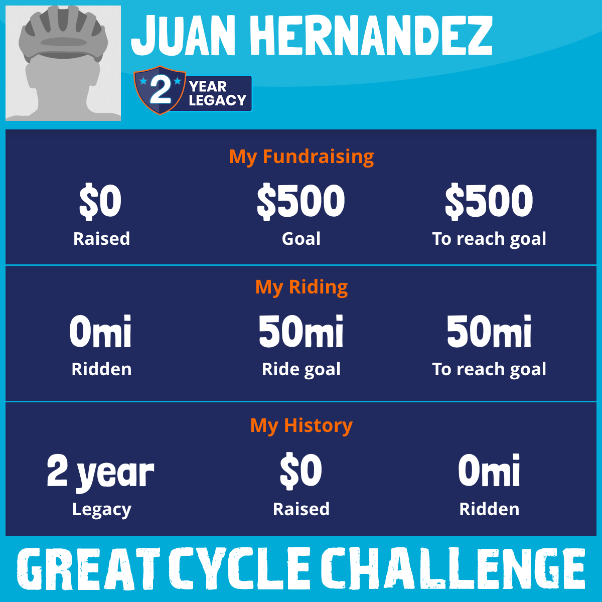 I am riding 50 mi in memory of Juan Hernandez. Please sponsor me and support my challenge to fight kids' cancer and save little lives.