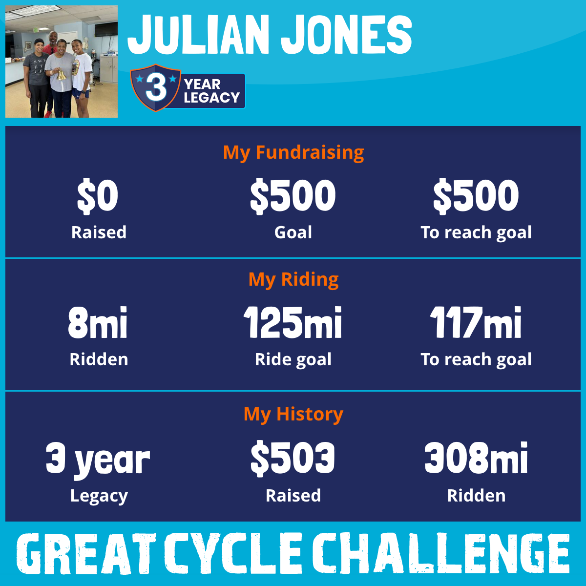 I am riding 125 mi for Winston & Lisa. Please sponsor me and support my challenge to fight kids' cancer and save little lives.