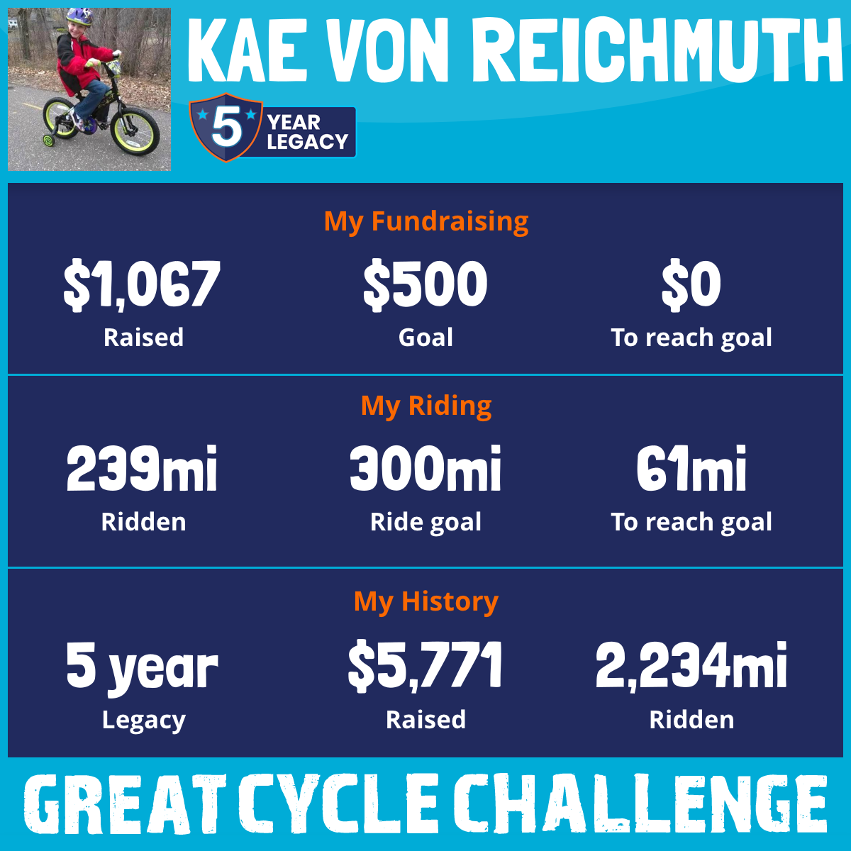 239 mi Ridden$1,067 Raised2026