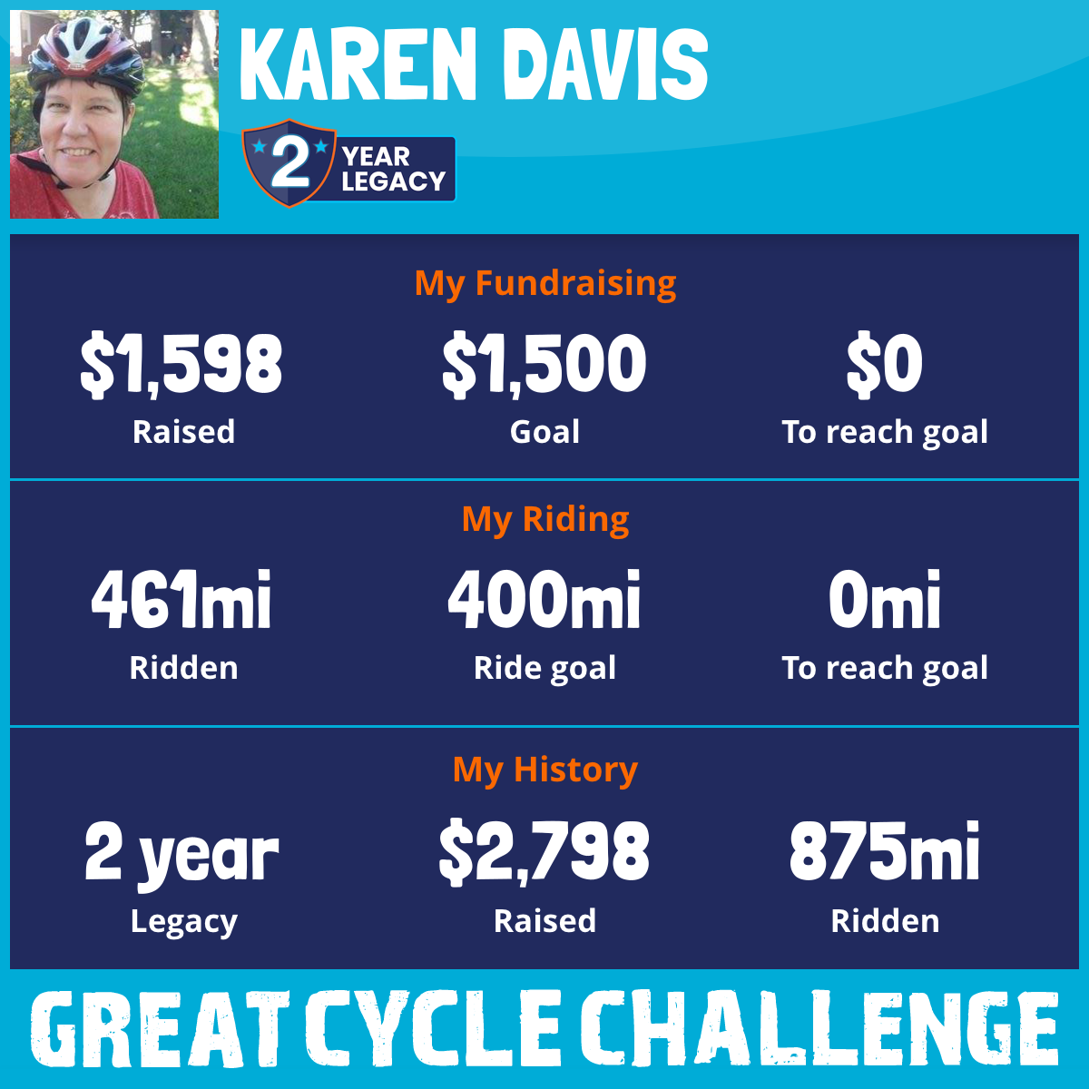 461 mi Ridden$1,598 Raised2025