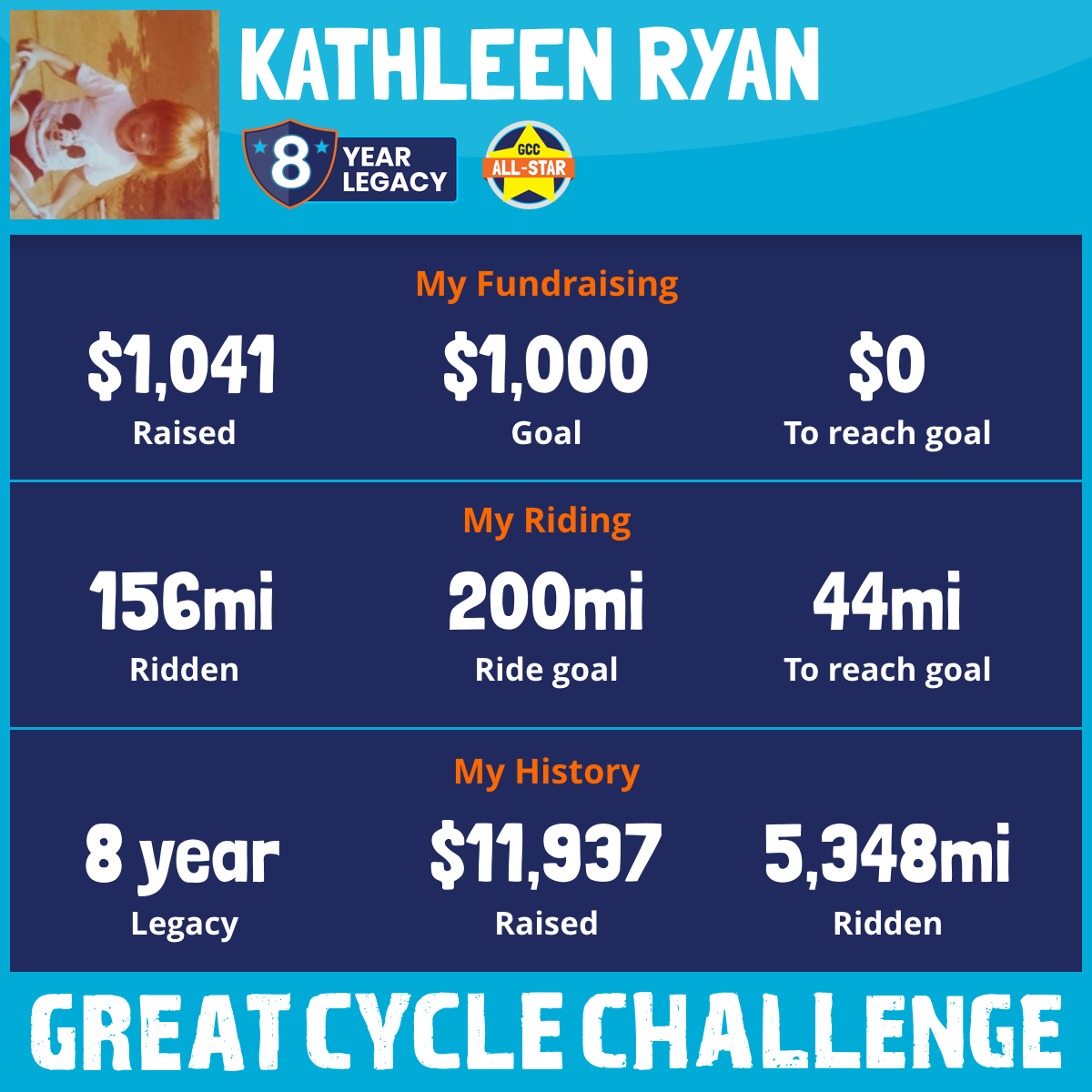 I just raised $1,000 to fight kids' cancer and achieved WARRIOR LEVEL in the challenge! Thank you so much for your support.