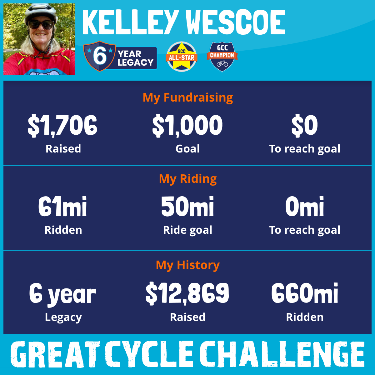 For the sixth year in a row, I am taking part in the Great Cycle Challenge to fight kids' cancer! The past five years I have ridden 599 miles. And along with my sponsors, I have raised $11,163 for the Children's Cancer Research Fund. I can't do this without YOU!