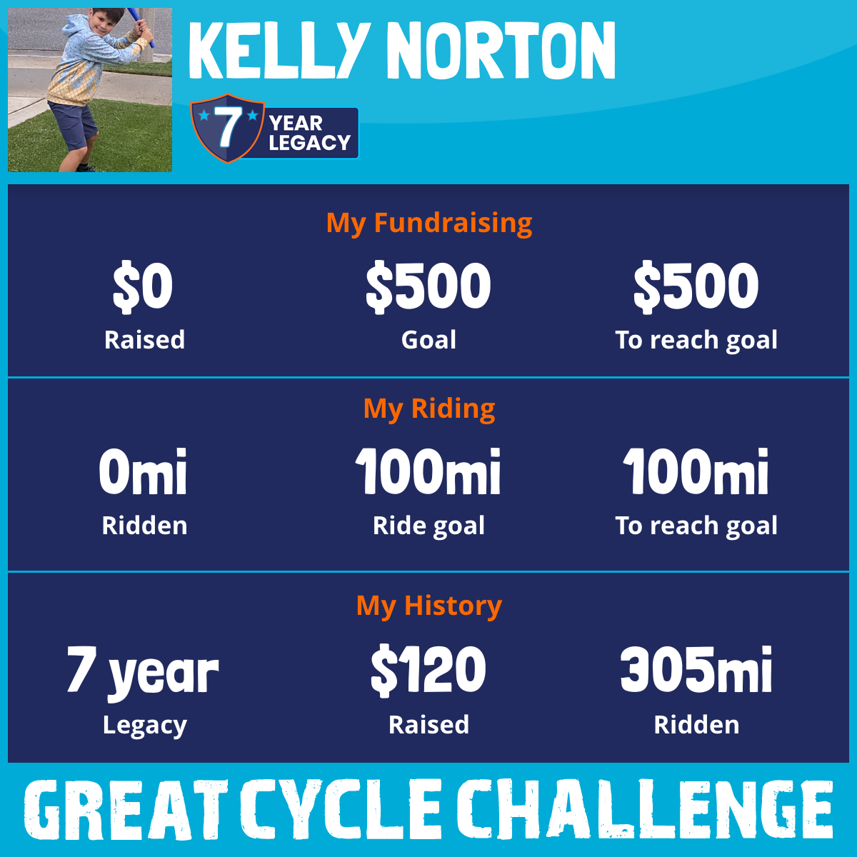 I am riding 100 mi in memory of my mum, Wanda Norton. Please sponsor me and support my challenge to fight kids' cancer and save little lives.