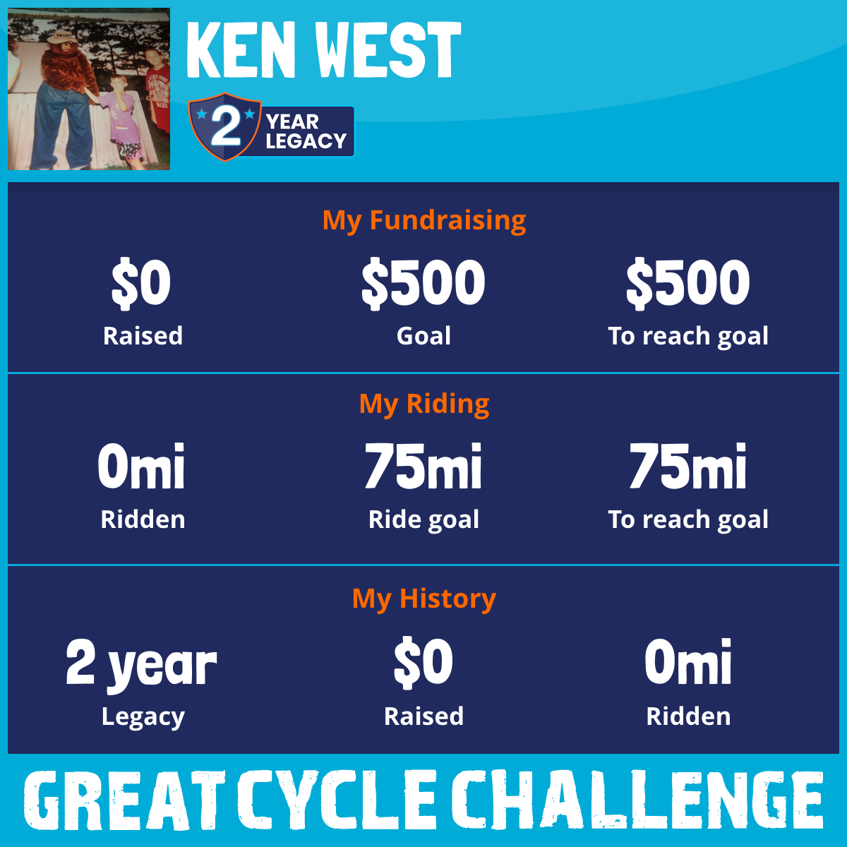I've raised $0 My goal is $500 Donate Now