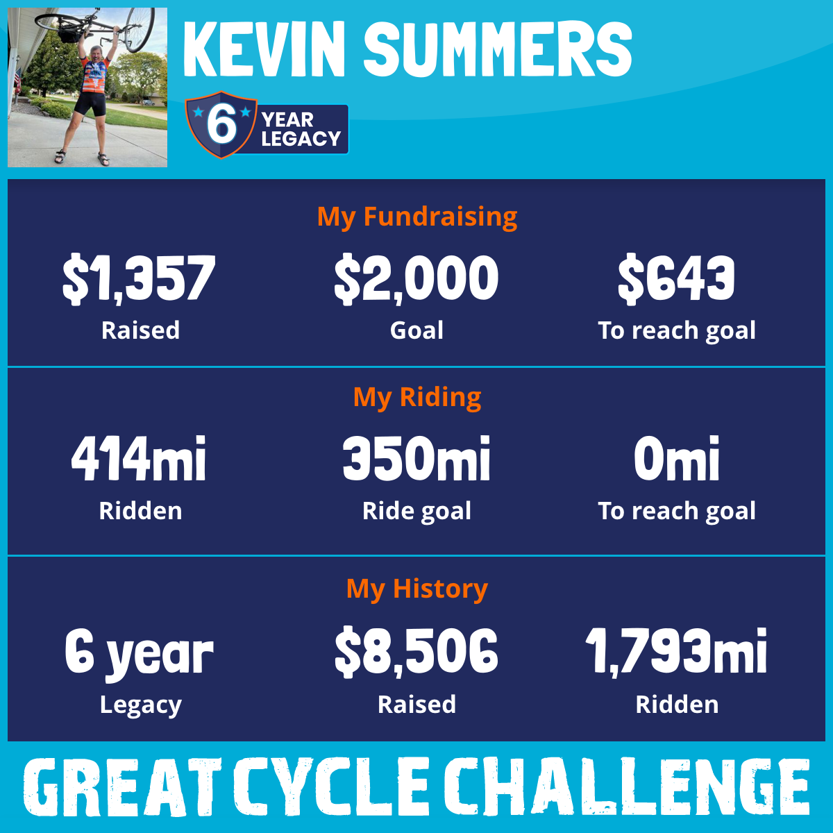 This is my SIXTH year doing this. So this year, I'm pedaling 250 miles to raise $2000!
