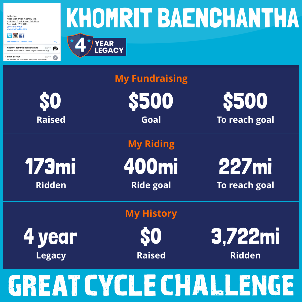 I am riding 400 mi to fight kids' cancer and save little lives. Please sponsor me to support my challenge!