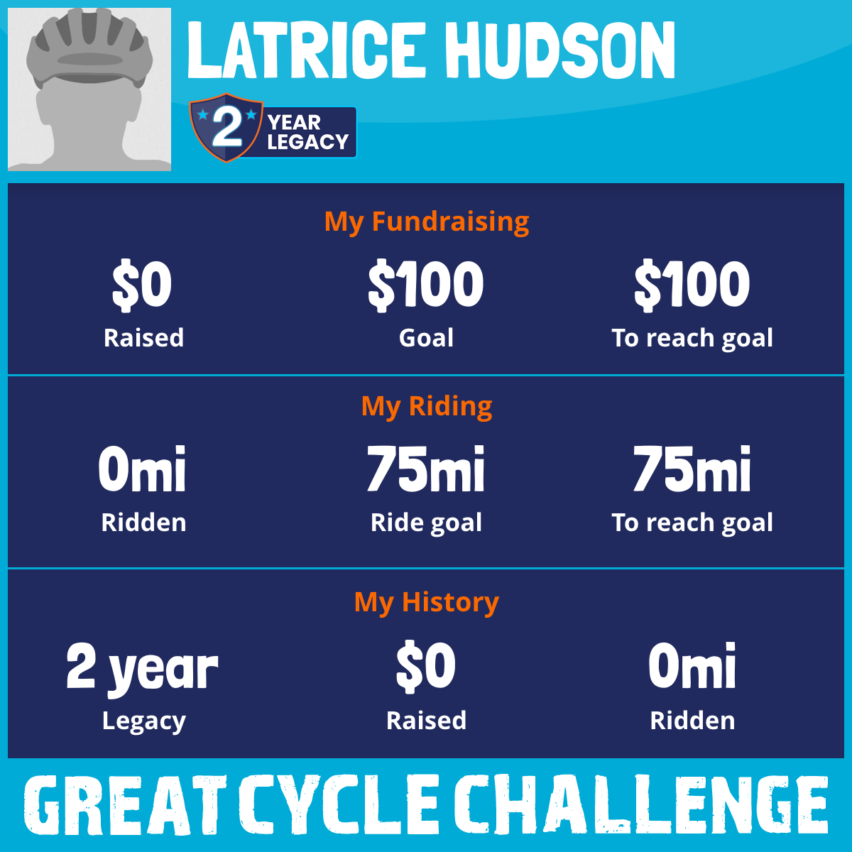 I am riding 75 mi for my son, Legend. Please sponsor me and support my challenge to fight kids' cancer and save little lives.