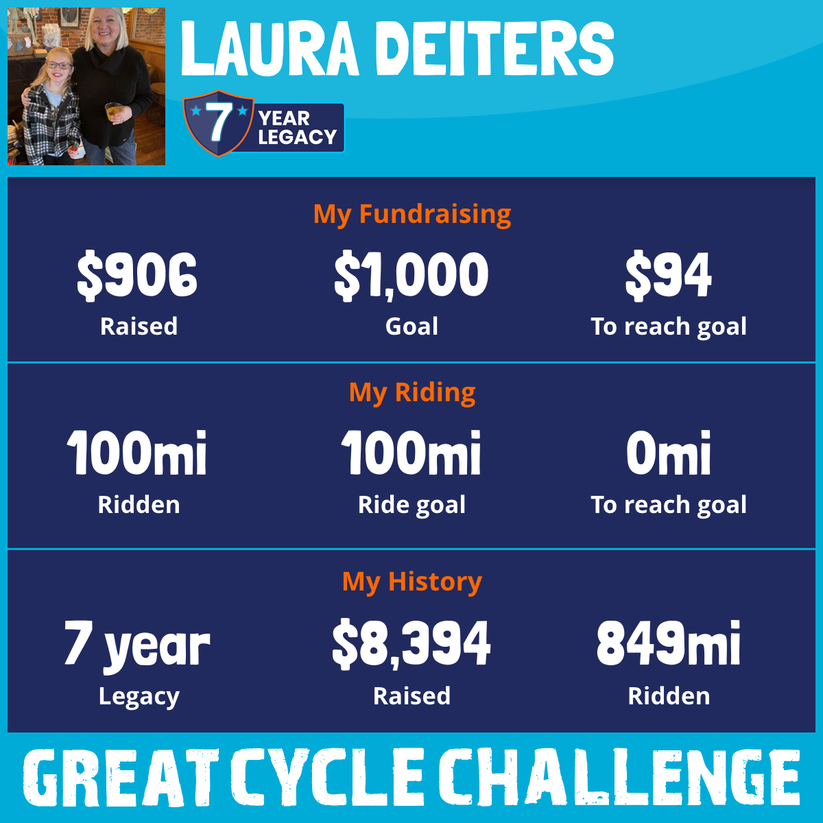 I am riding in honor of our brave little granddaughter. Hallie was first diagnosed with leukemia at age 3, she beat her cancer, rang the bell in 2020, and relapsed in 2022. Her current treatment was Car-T therapy. On July 18th. 2024, Hallie once more rang the bell 🔔. She is cancer free!