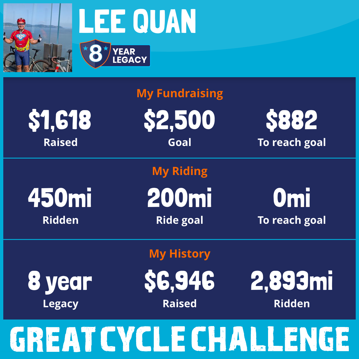 450 mi Ridden$1,618 Raised2025