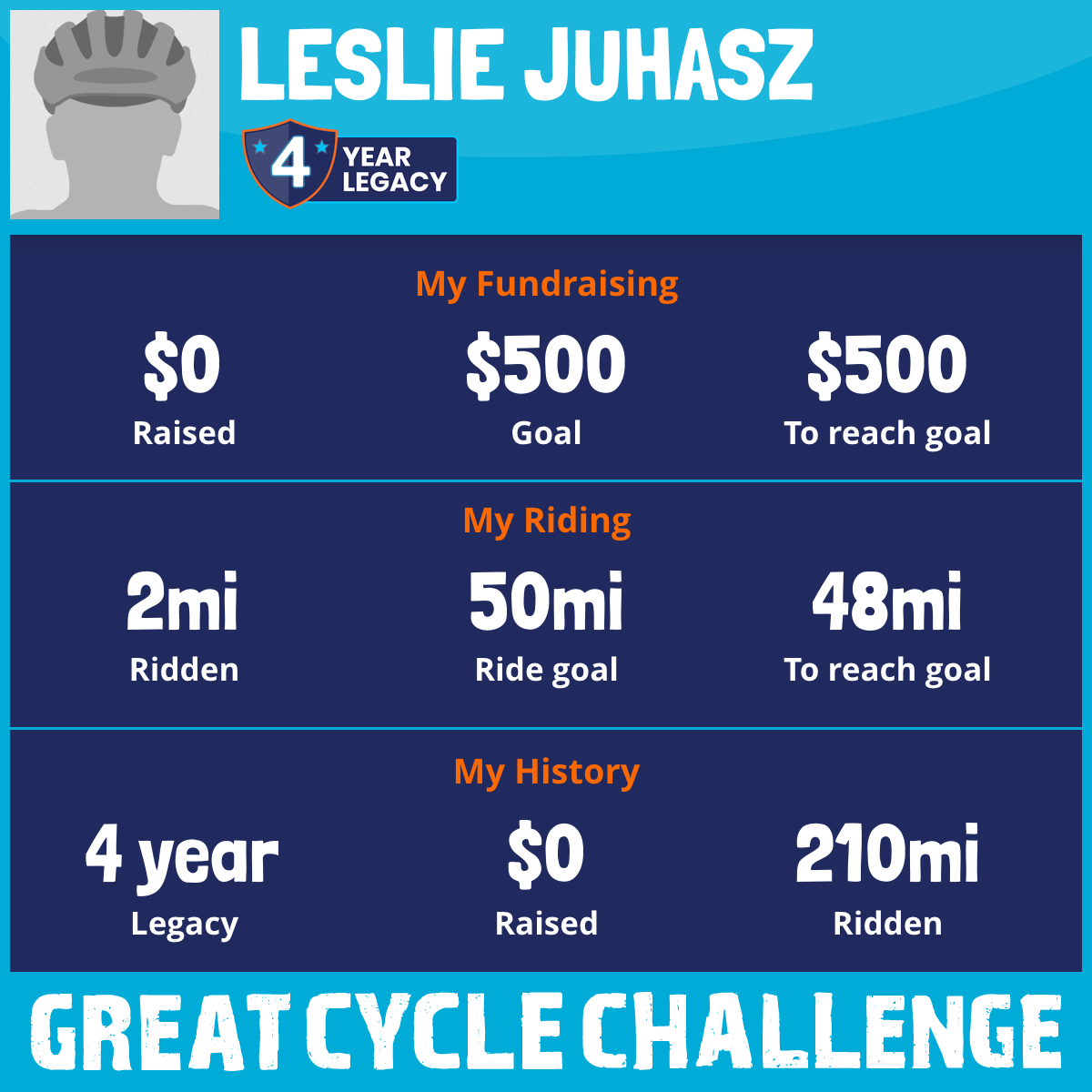 I am riding 50 mi for M. Williams. Please sponsor me and support my challenge to fight kids' cancer and save little lives.