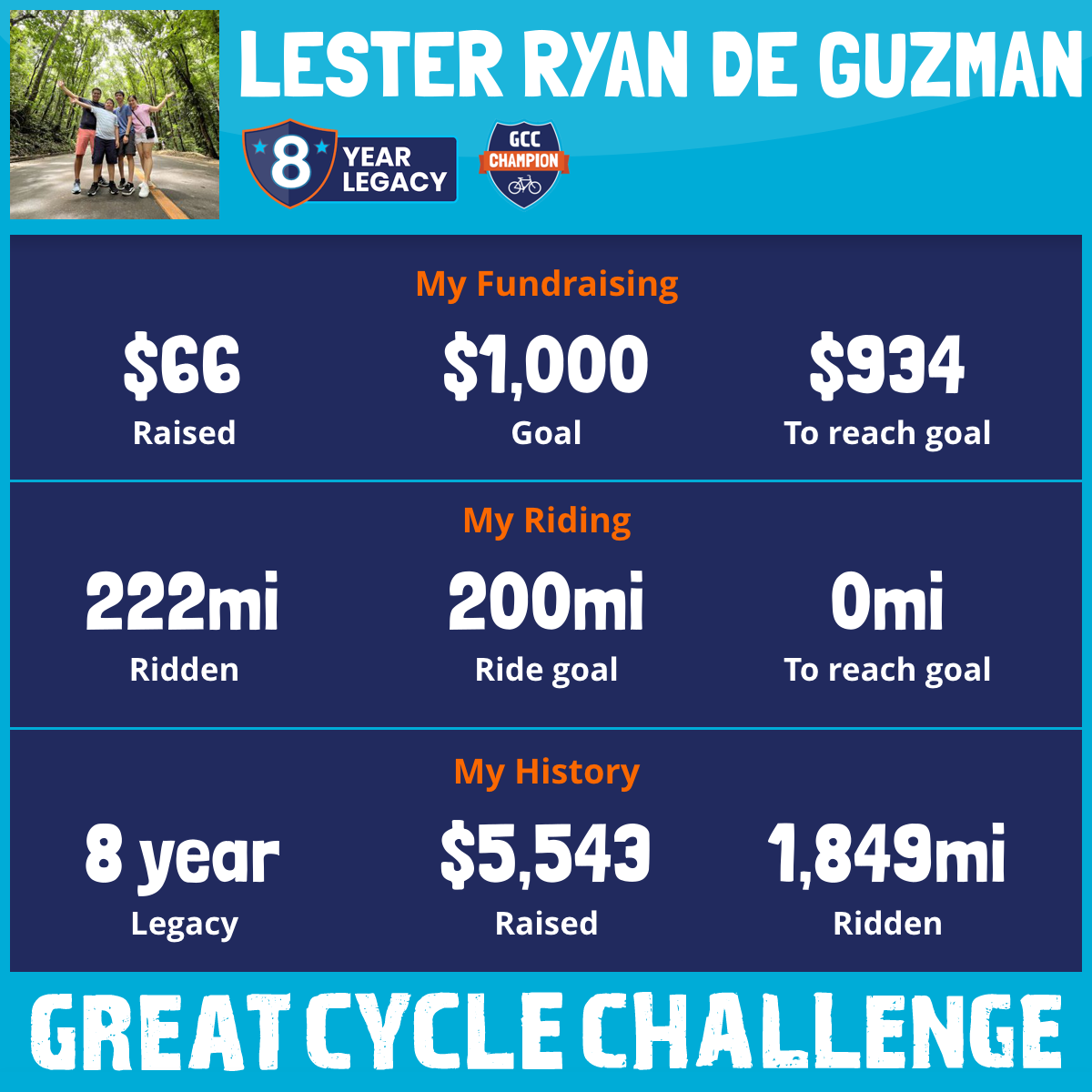 222 mi Ridden$66 Raised2025