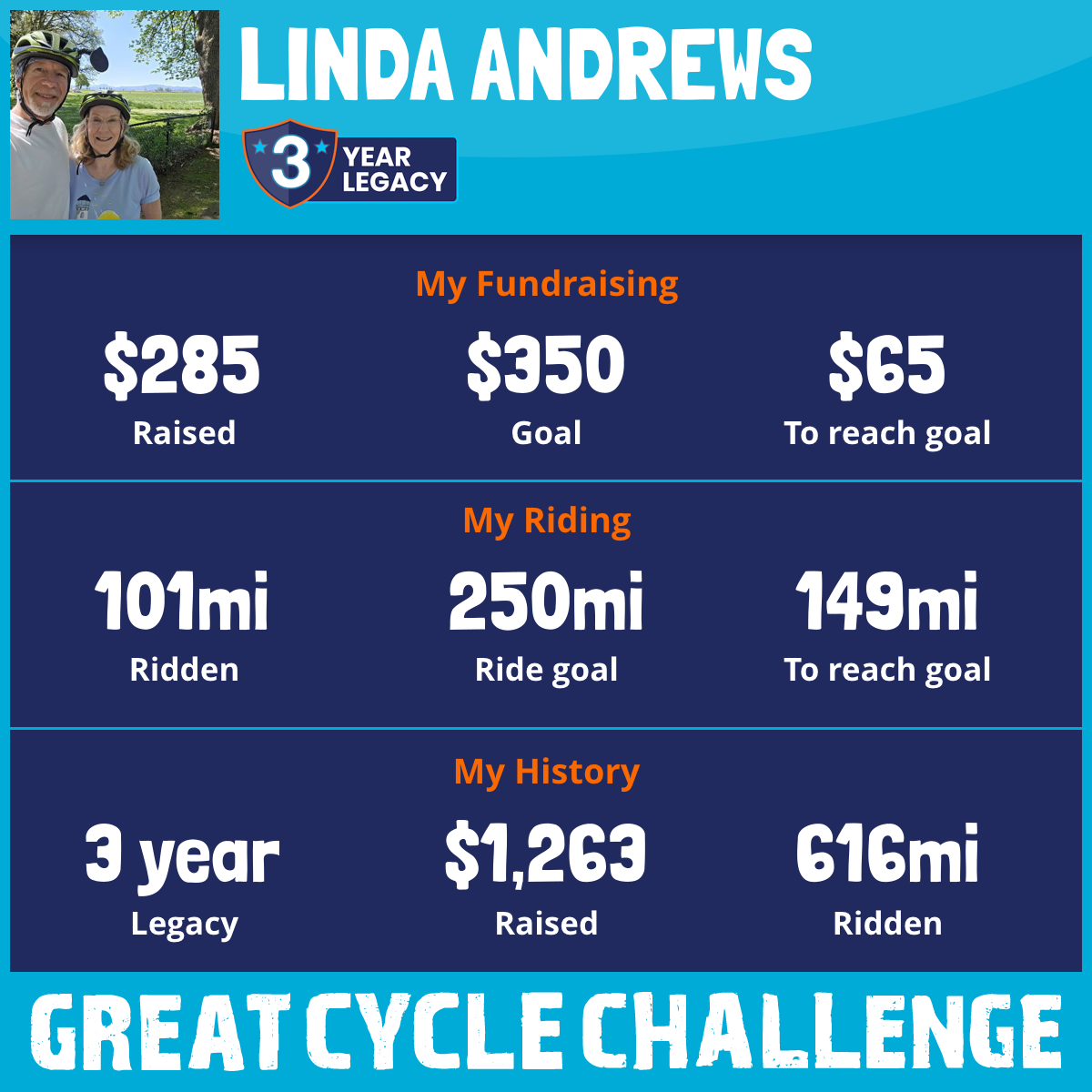 302 mi Ridden$631 Raised2023
