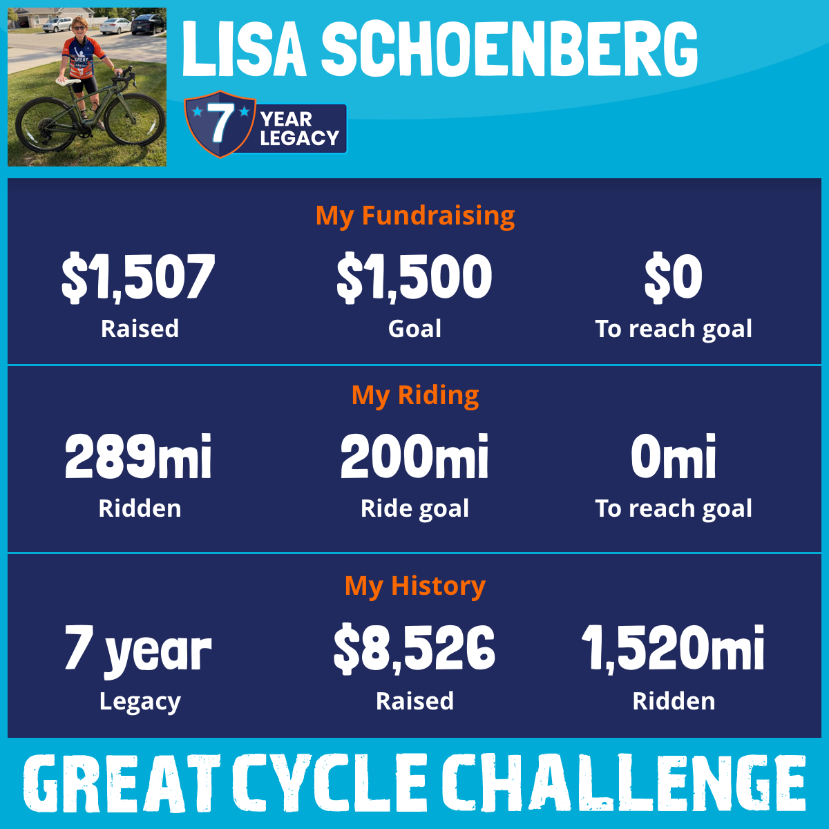 289 mi Ridden$1,507 Raised2025