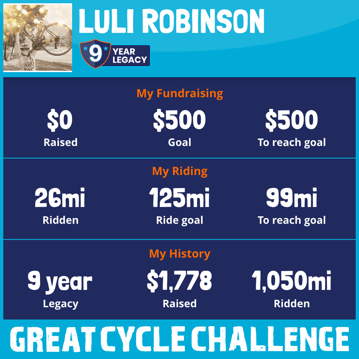 I am riding 125 mi to fight kids' cancer and save little lives. Please sponsor me to support my challenge!
