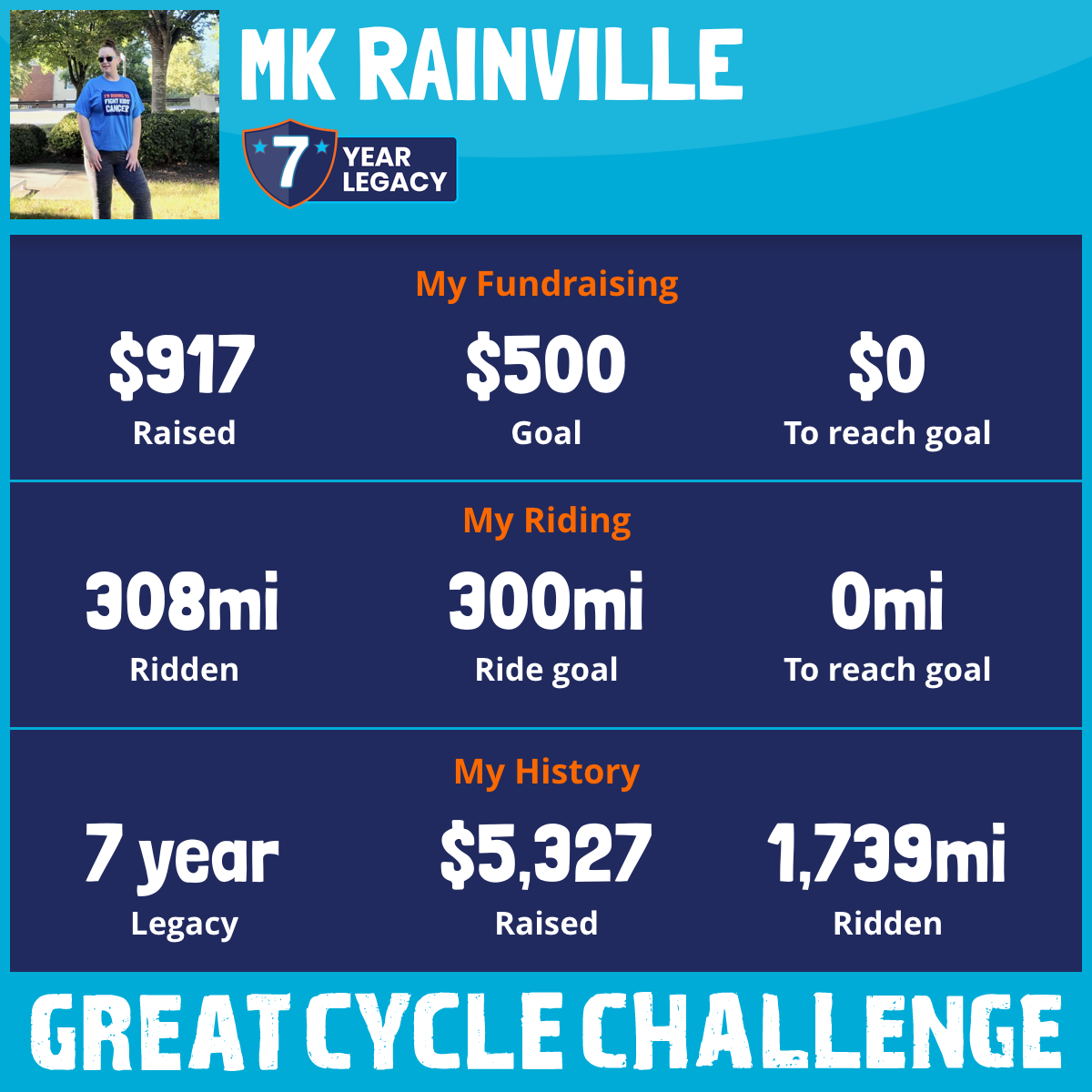 I am riding 300 mi to fight kids' cancer and save little lives. Please sponsor me to support my challenge!