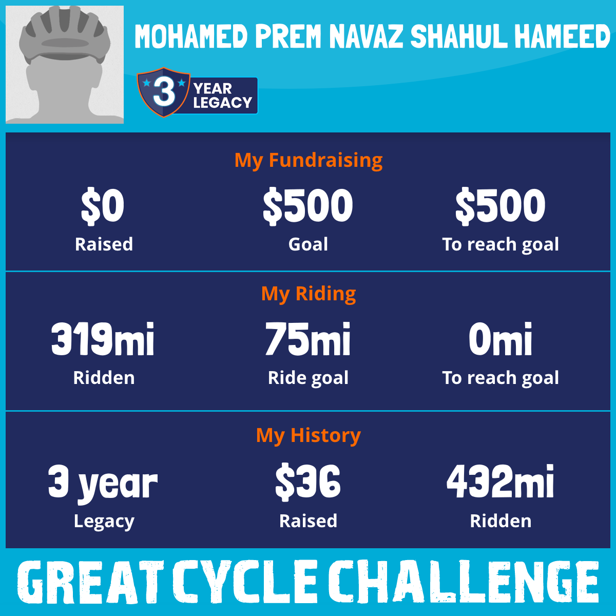 I am riding 75 mi in memory of Thariq Ajeez. Please sponsor me and support my challenge to fight kids' cancer and save little lives.