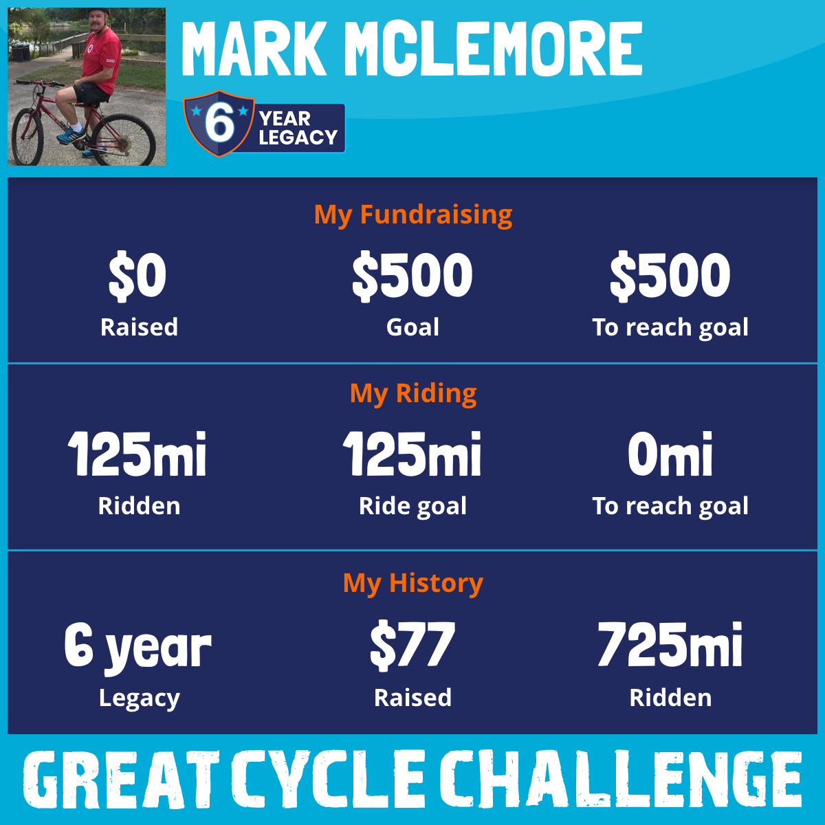 I am riding 125 mi to fight kids' cancer and save little lives. Please sponsor me to support my challenge!