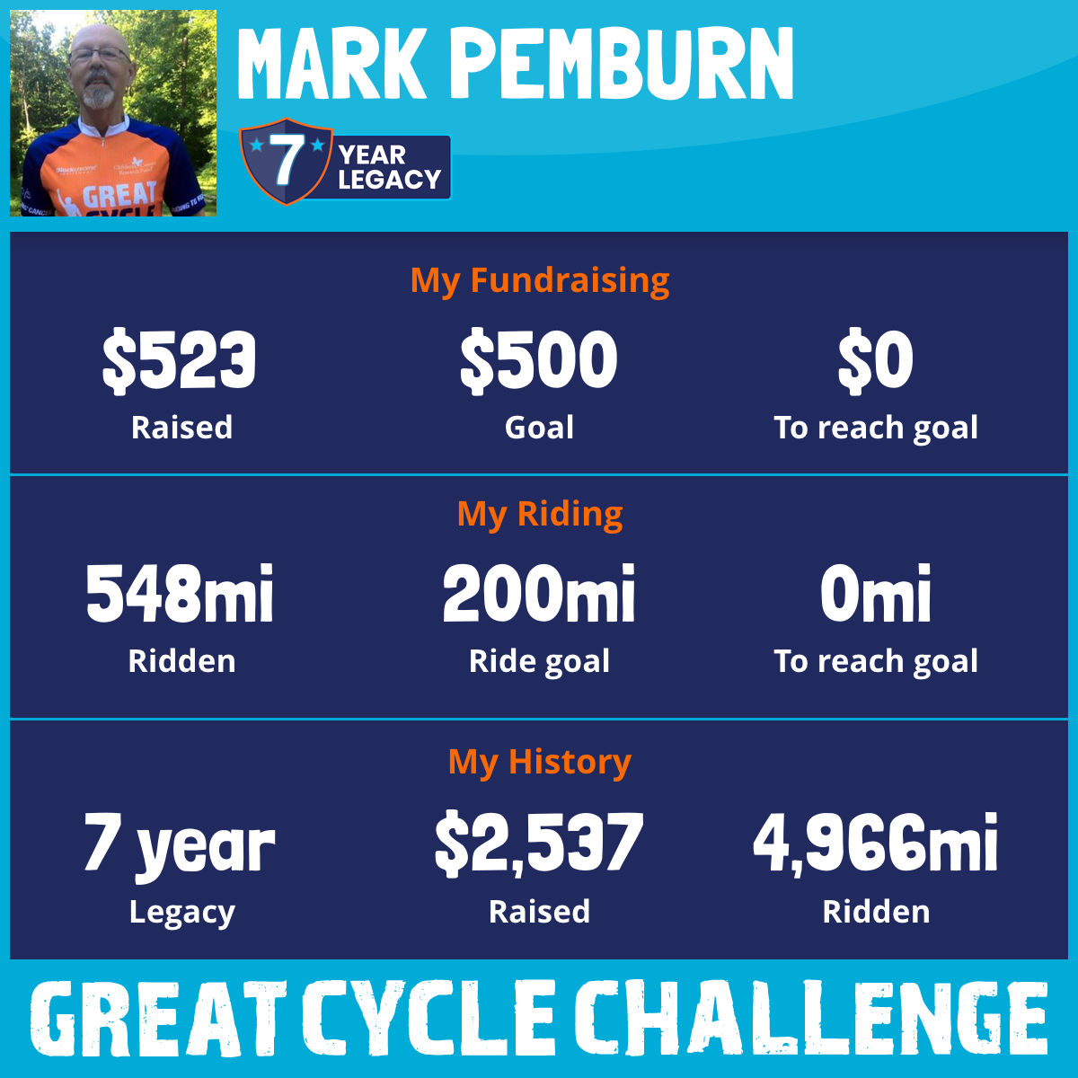 This September, I will be riding for my fifth Great Cycle Challenge to fight kids' cancer!