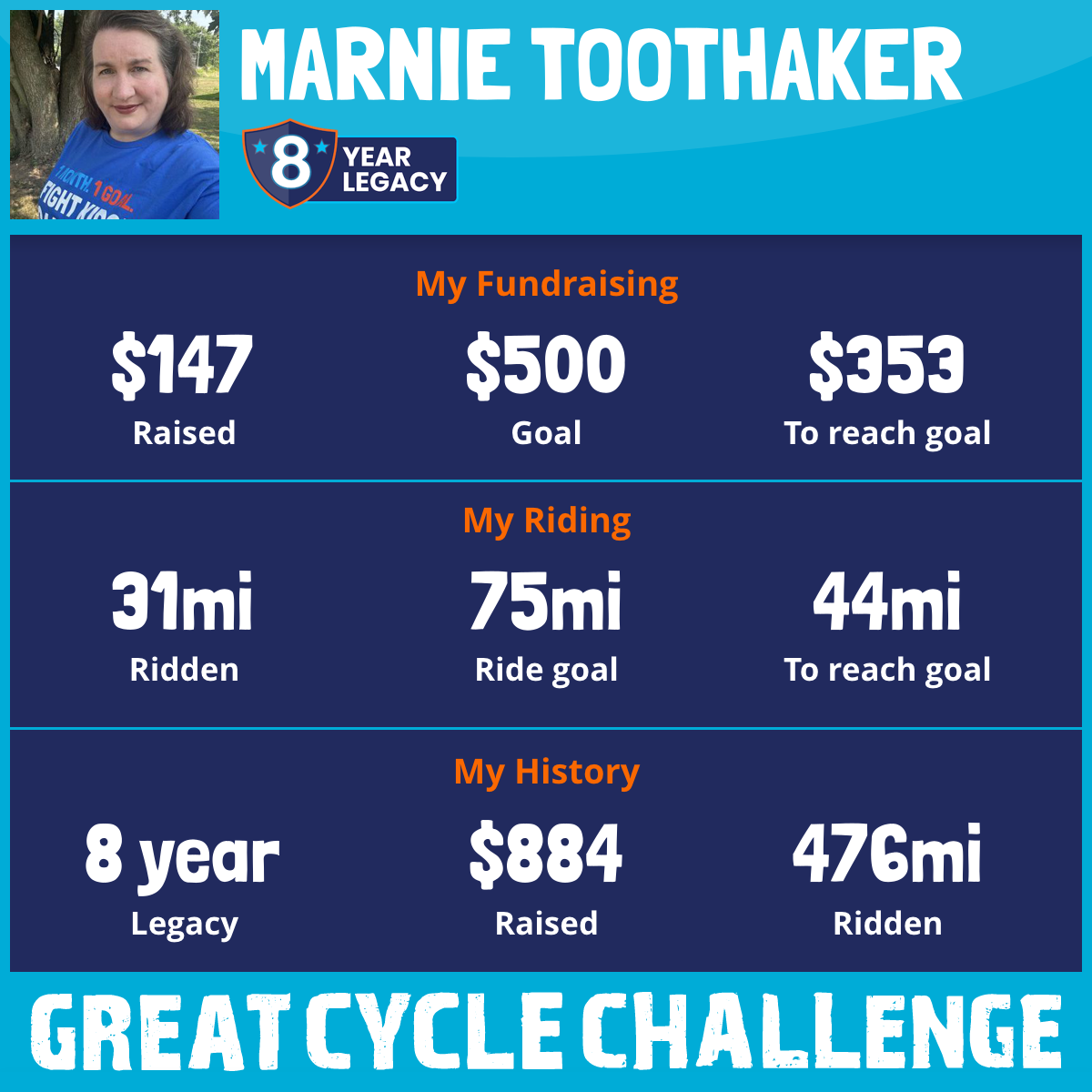 So I am raising funds through my challenge to help these kids and support Children's Cancer Research Fund to allow them to continue their work to develop lifesaving treatments and find a cure for childhood cancer.
