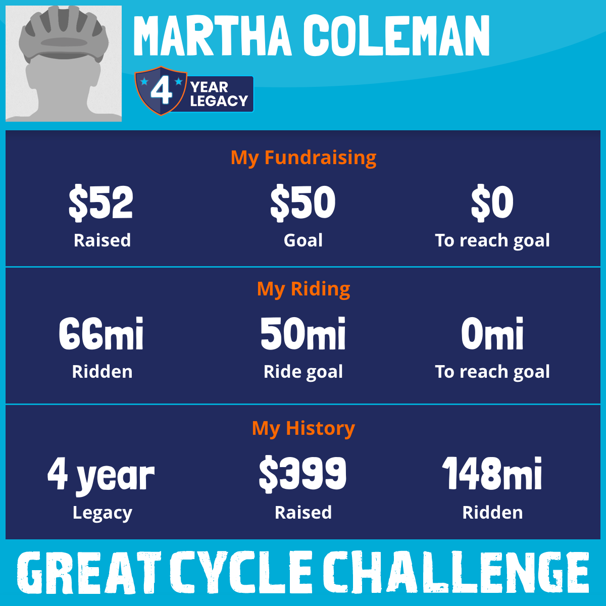 I am riding 50 mi to fight kids' cancer and save little lives. Please sponsor me to support my challenge!