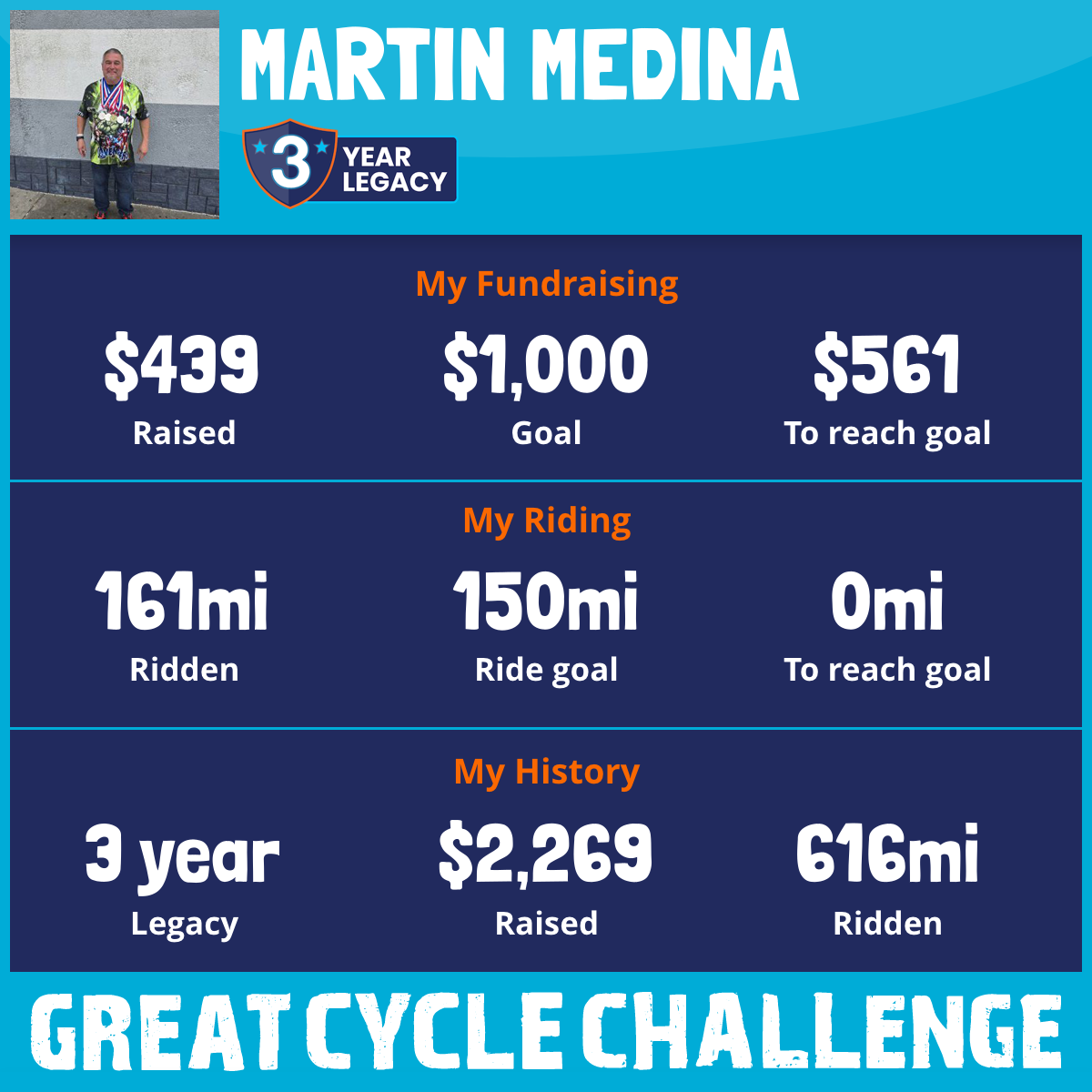 As a cancer survivor myself I understand what kids are going through. So I am riding 250 at least to raise money to help children around the world.