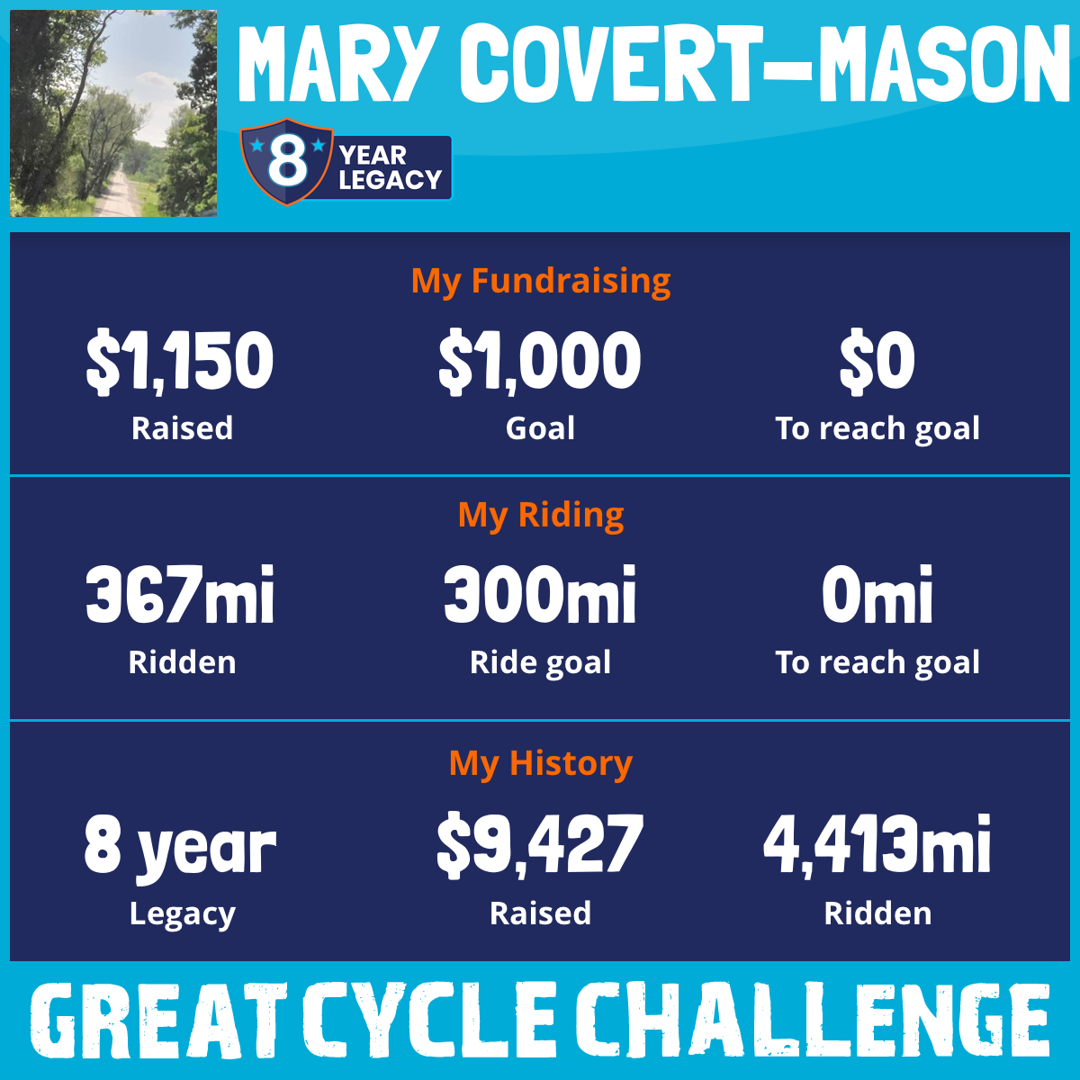 367 mi Ridden$1,150 Raised2025