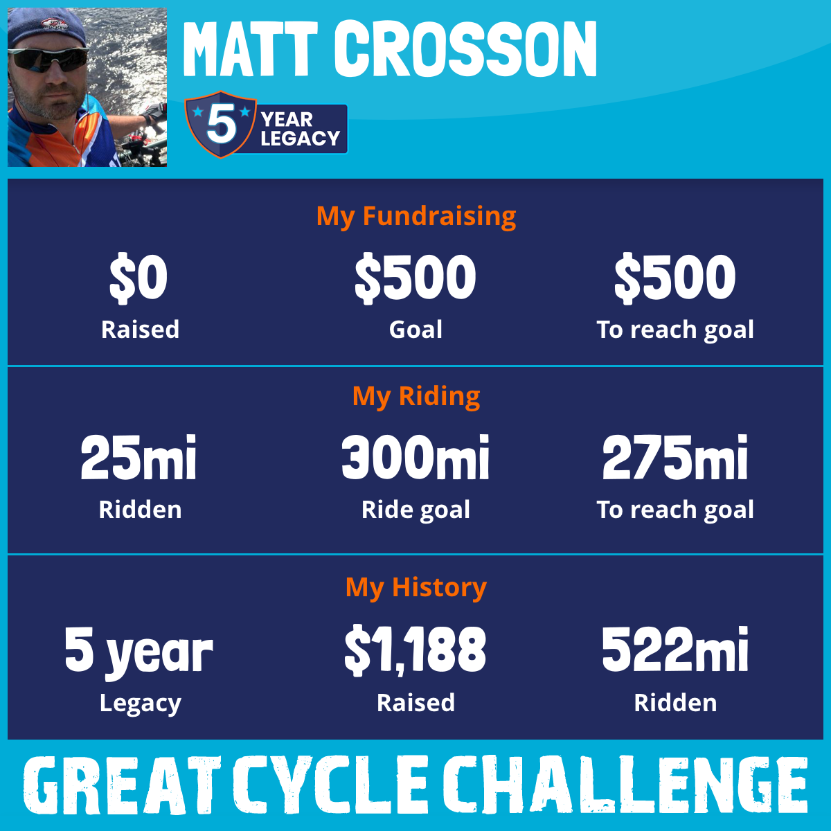I am riding 300 mi to fight kids' cancer and save little lives. Please sponsor me to support my challenge!
