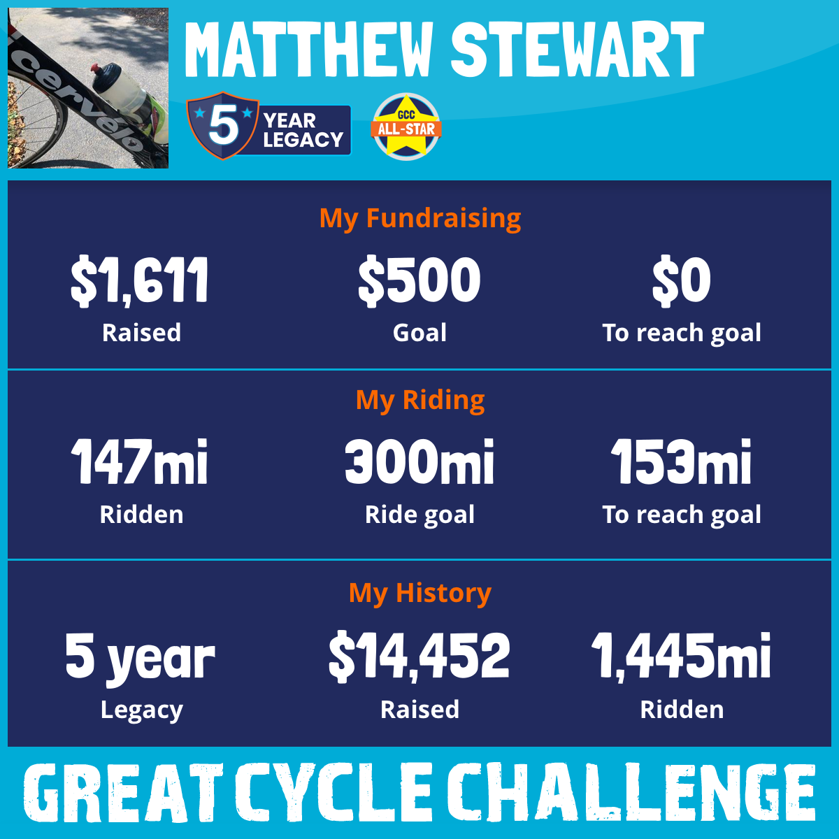 147 mi Ridden$1,611 Raised2025