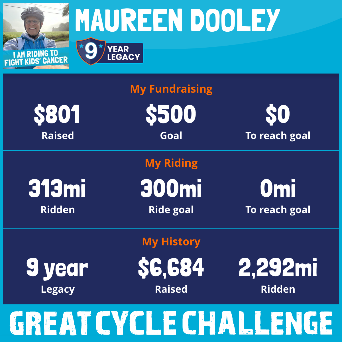 300 mi Ridden$1,064 Raised2023
