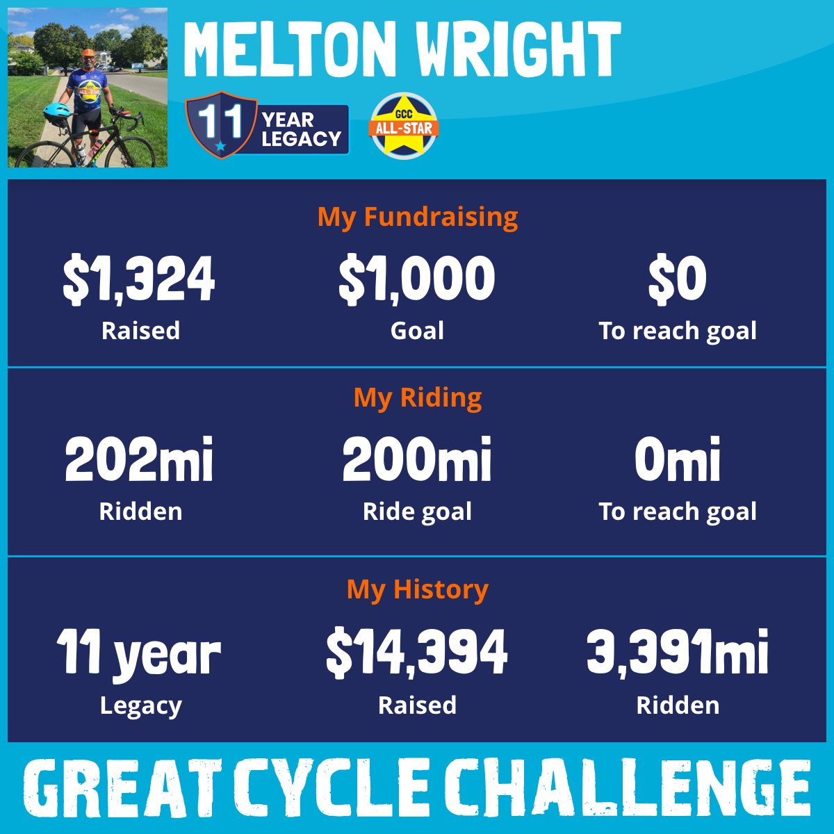 202 mi Ridden$1,324 Raised2025