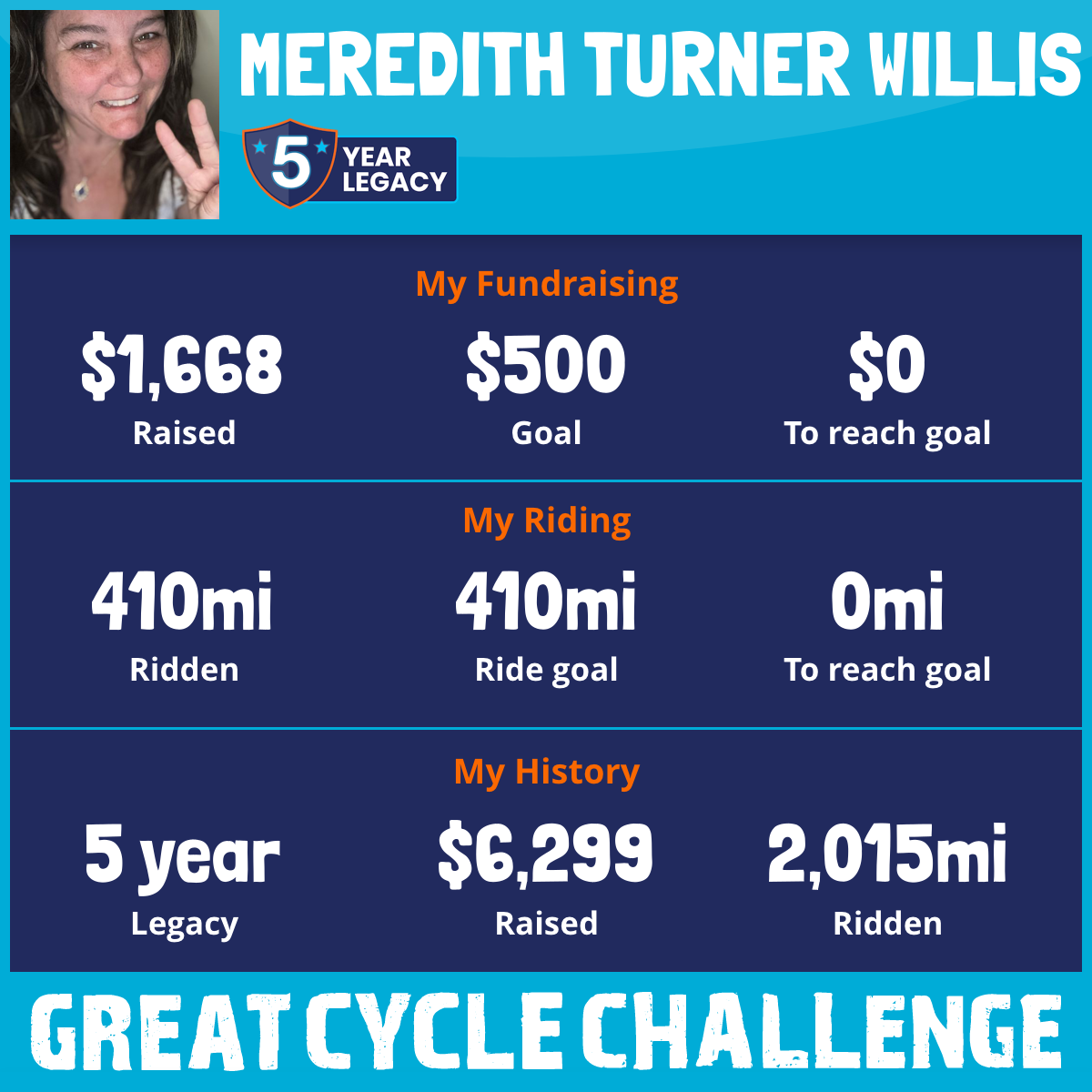 410 mi Ridden$1,668 Raised2025