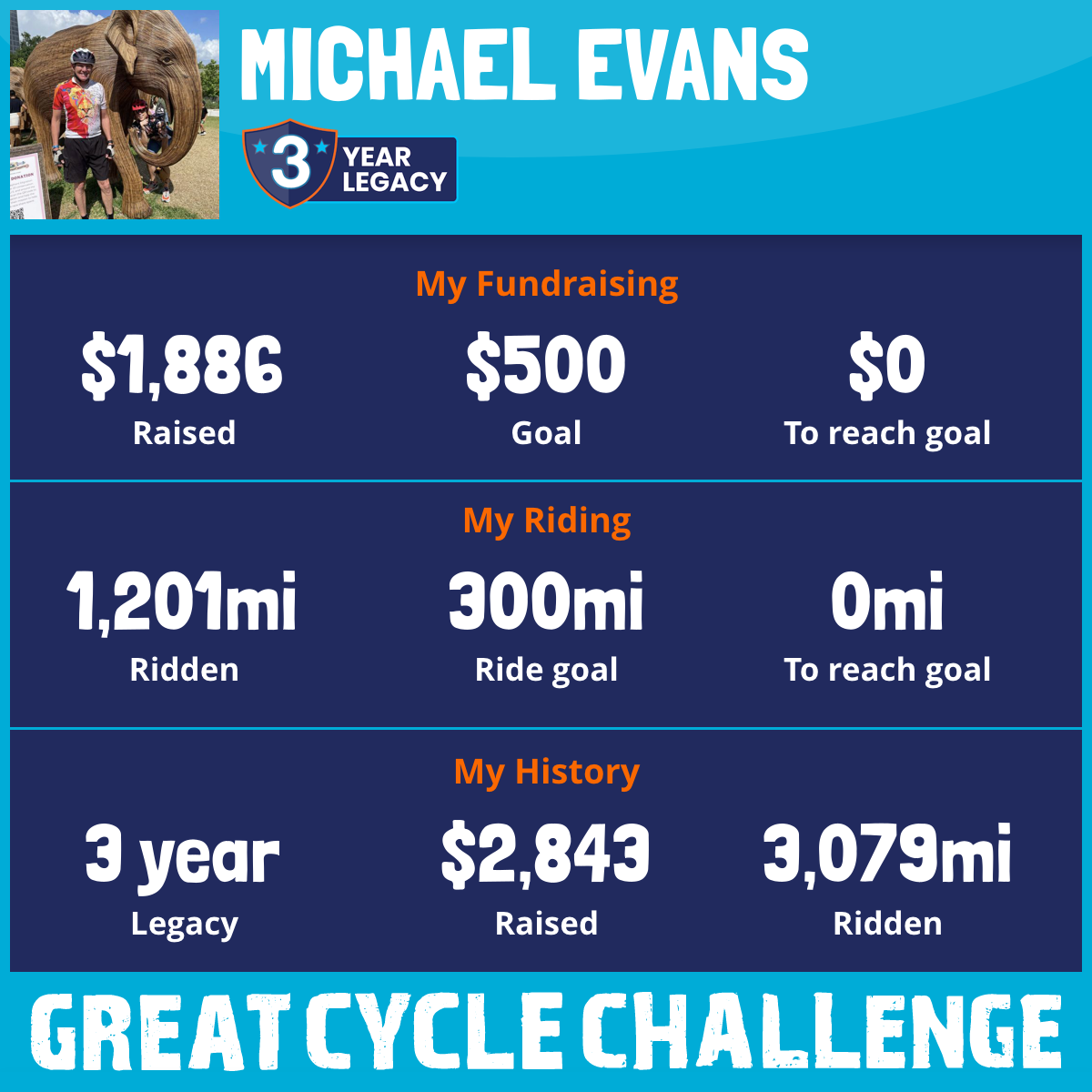 1,201 mi Ridden$1,886 Raised2025