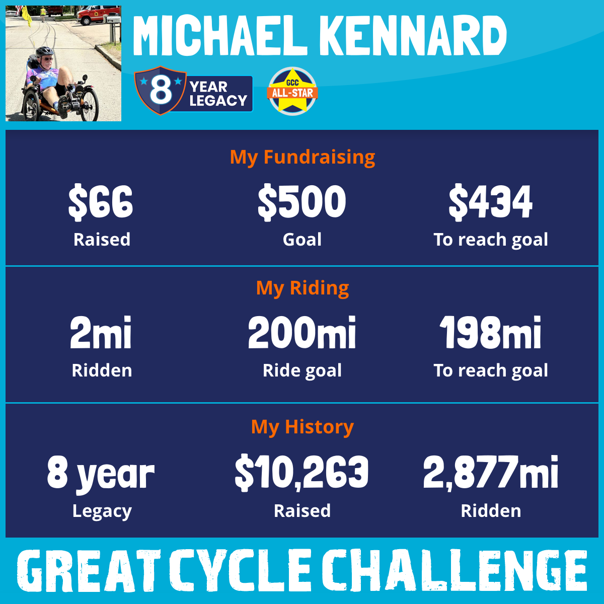 I am riding 200 mi to fight kids' cancer and save little lives. Please sponsor me to support my challenge!