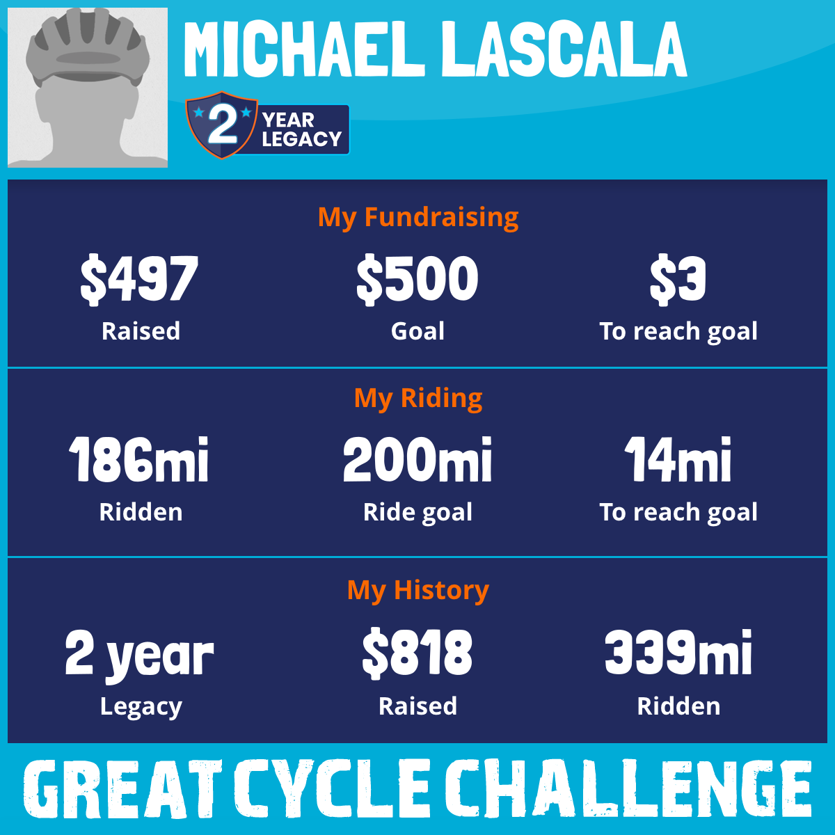 I am riding 200 mi to fight kids' cancer and save little lives. Please sponsor me to support my challenge!