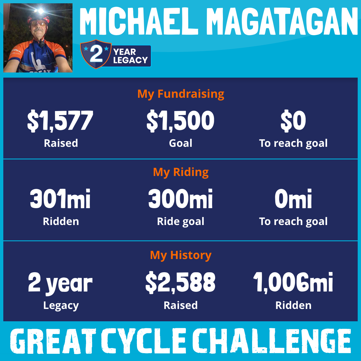 301 mi Ridden$1,577 Raised2025