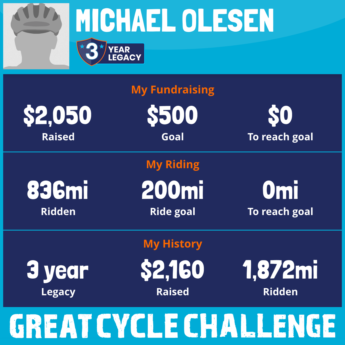 I am riding 200 mi for my loved one, Everyone. Please sponsor me and support my challenge to fight kids' cancer and save little lives.