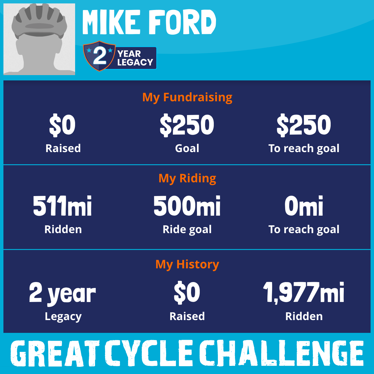 I am riding 500 mi in memory of Gavin. Please sponsor me and support my challenge to fight kids' cancer and save little lives.