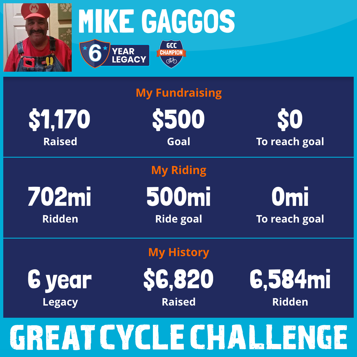 702 mi Ridden$1,170 Raised2025