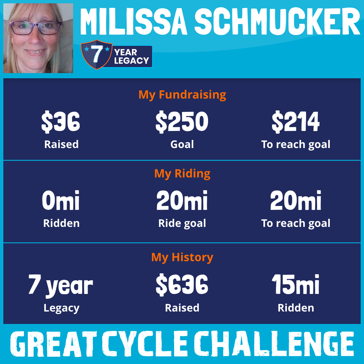 I am riding 20 mi in memory of Sheila. Please sponsor me and support my challenge to fight kids' cancer and save little lives.
