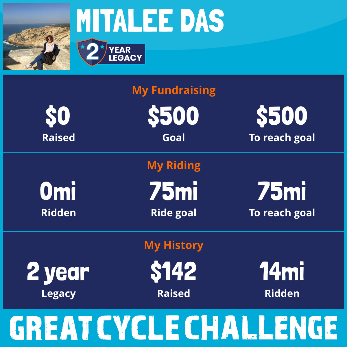 14 mi Ridden$142 Raised2018