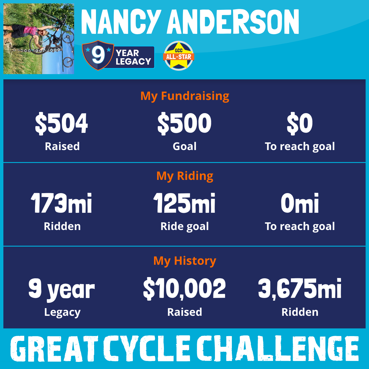 My inspiration comes from my 14 year cancer free hero! I love you with all my heart!! I’m also riding in memory of a beautiful, brave & strong 4 year old who is running joyously in heaven today & who loves the color purple.
