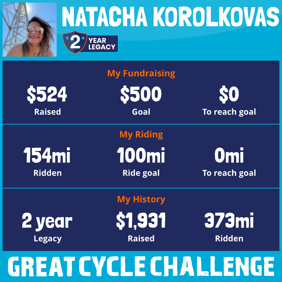 219 mi Ridden$1,407 Raised2023