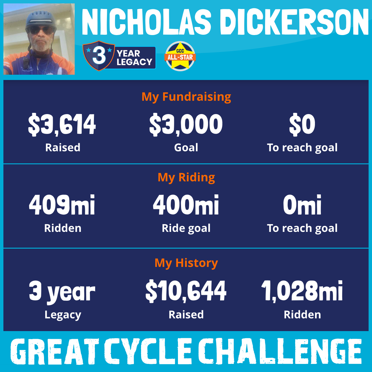 409 mi Ridden$3,614 Raised2025