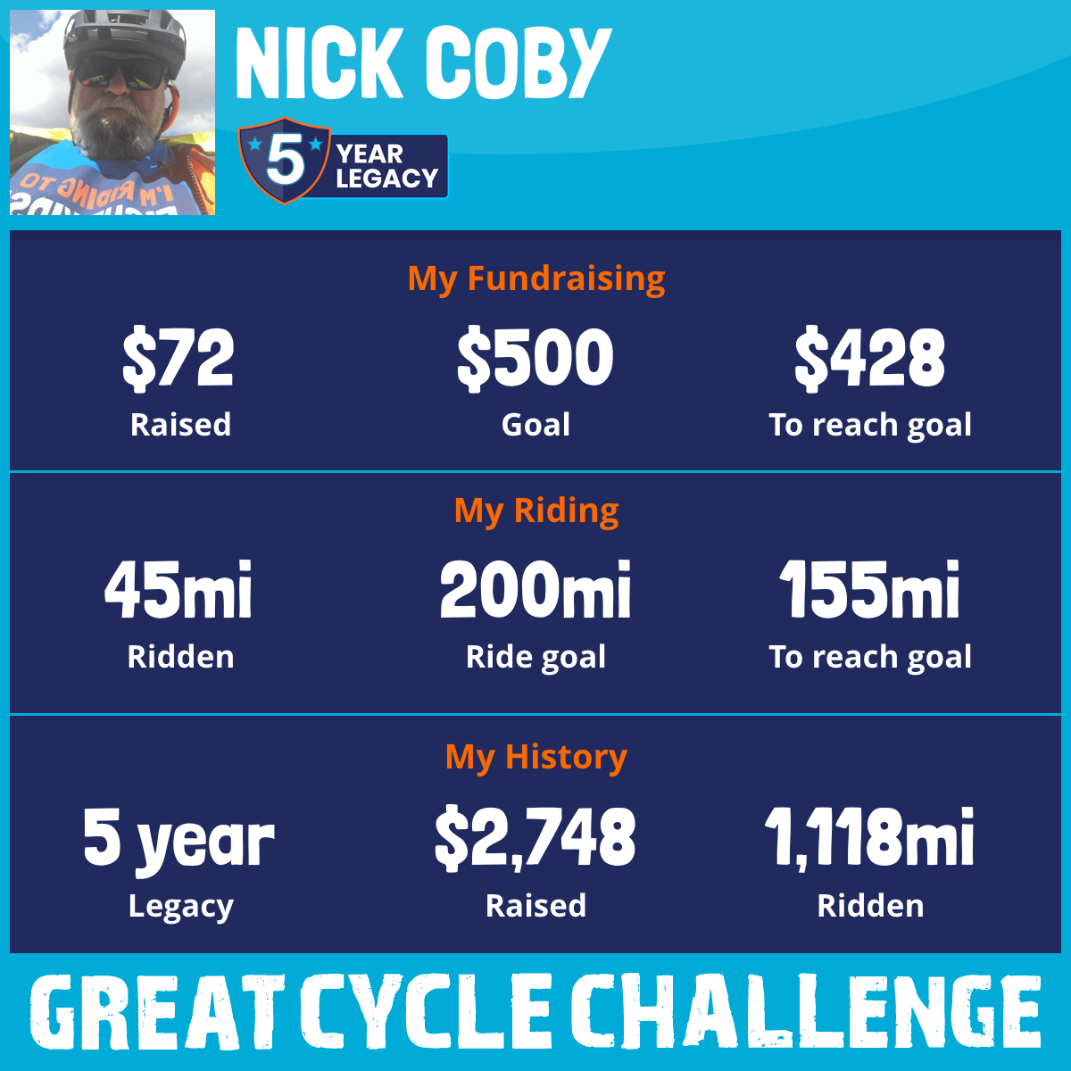 208 mi Ridden$217 Raised2021
