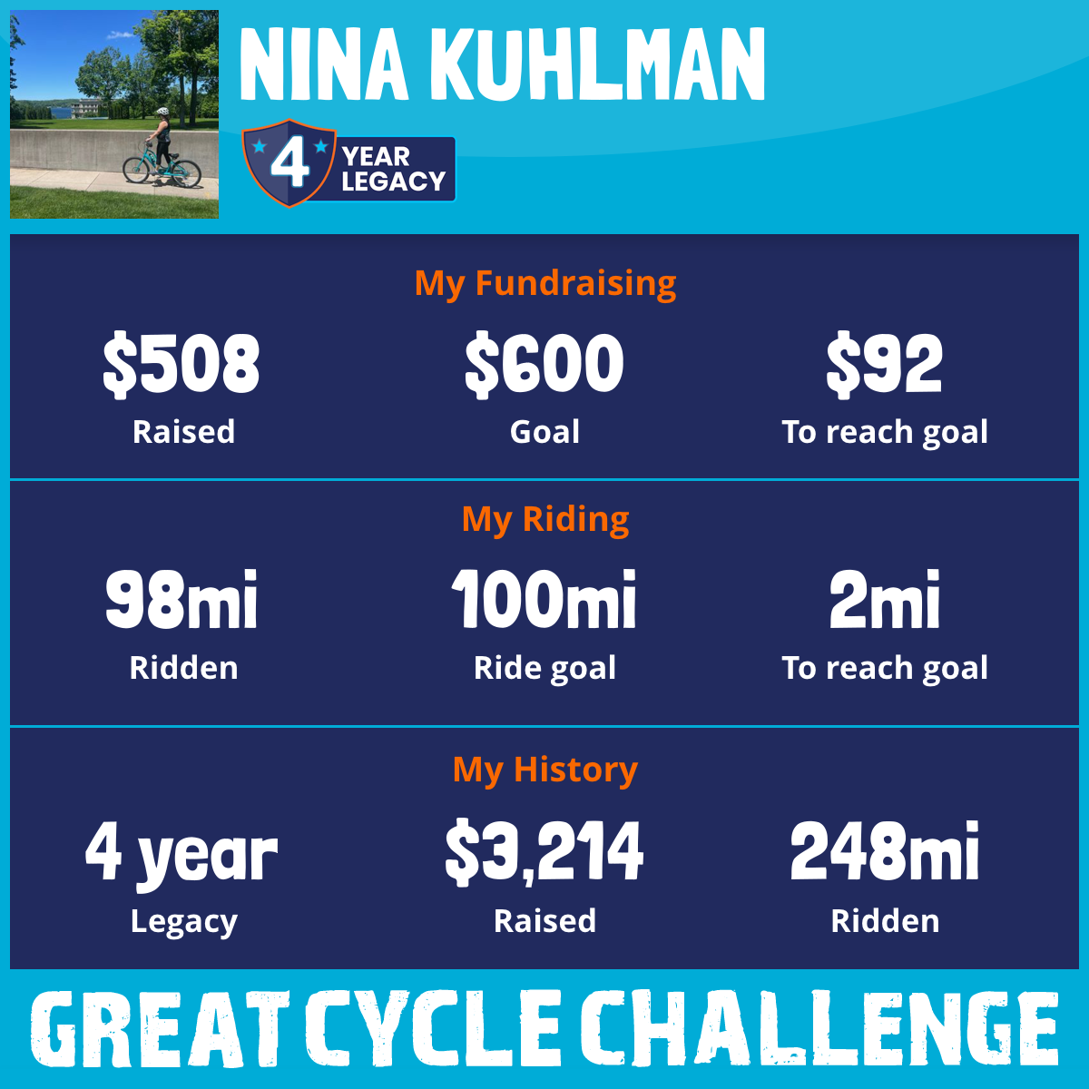 Cancer has touched everyone's lives. When my niece was diagnosed several years ago, it was a very scary time. We are so thankful for the outstanding treatment she received. She is a fighter and we are so grateful she has fully recovered. Treating cancer successfully has taken vast research, and the research needs to continue to help every child who needs it. I am also riding to do something positive this month. I could use the motivation! Grateful to join this team with my husband and friends.