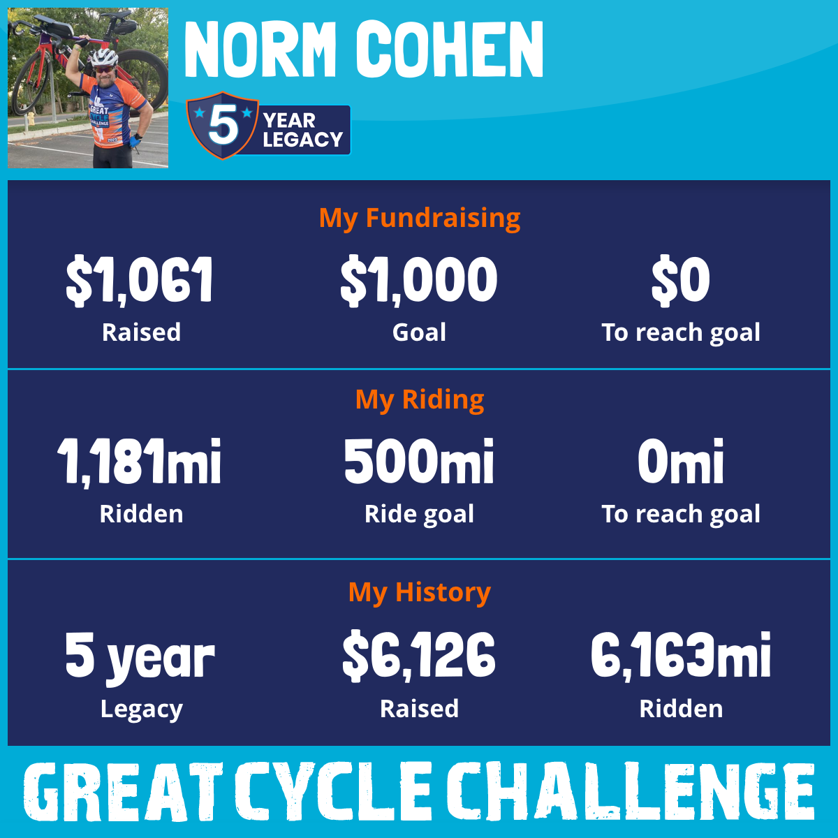 1,226 mi Ridden$1,061 Raised2025
