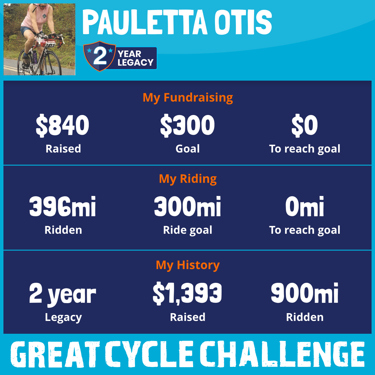 396 mi Ridden$840 Raised2025