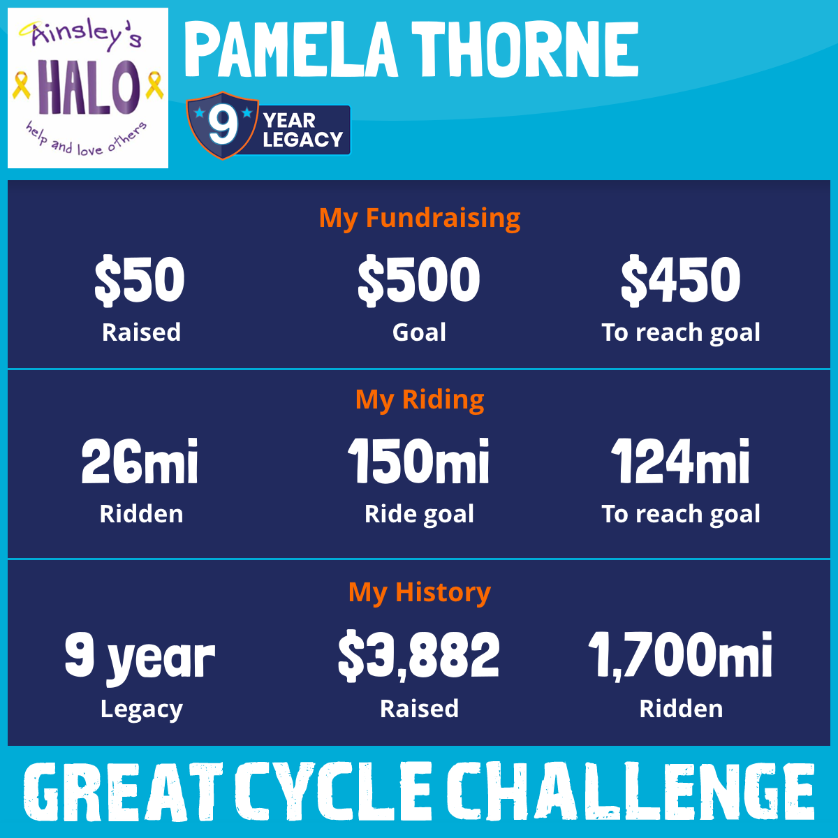 This September, Ainsley's HALO is taking part in the Great Cycle Challenge to fight kids' cancer!